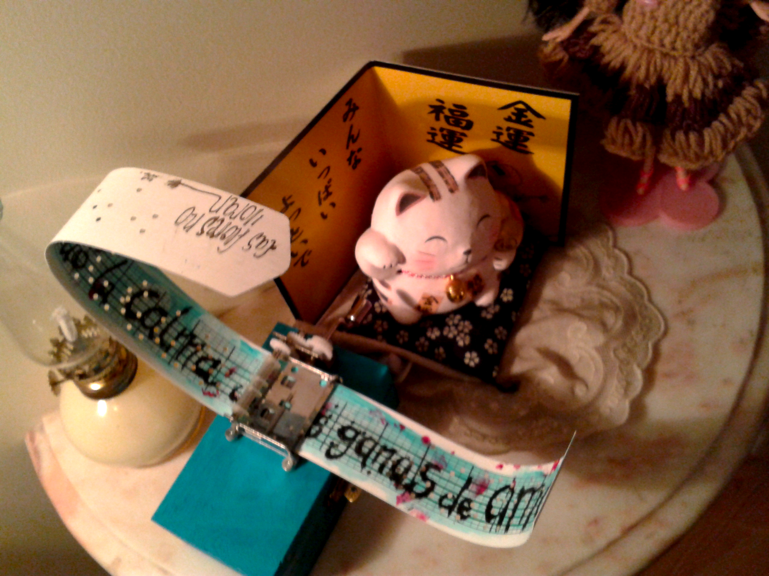 Caja de madera pintada a mano, que sirve de recipiente para guardar la partitura.